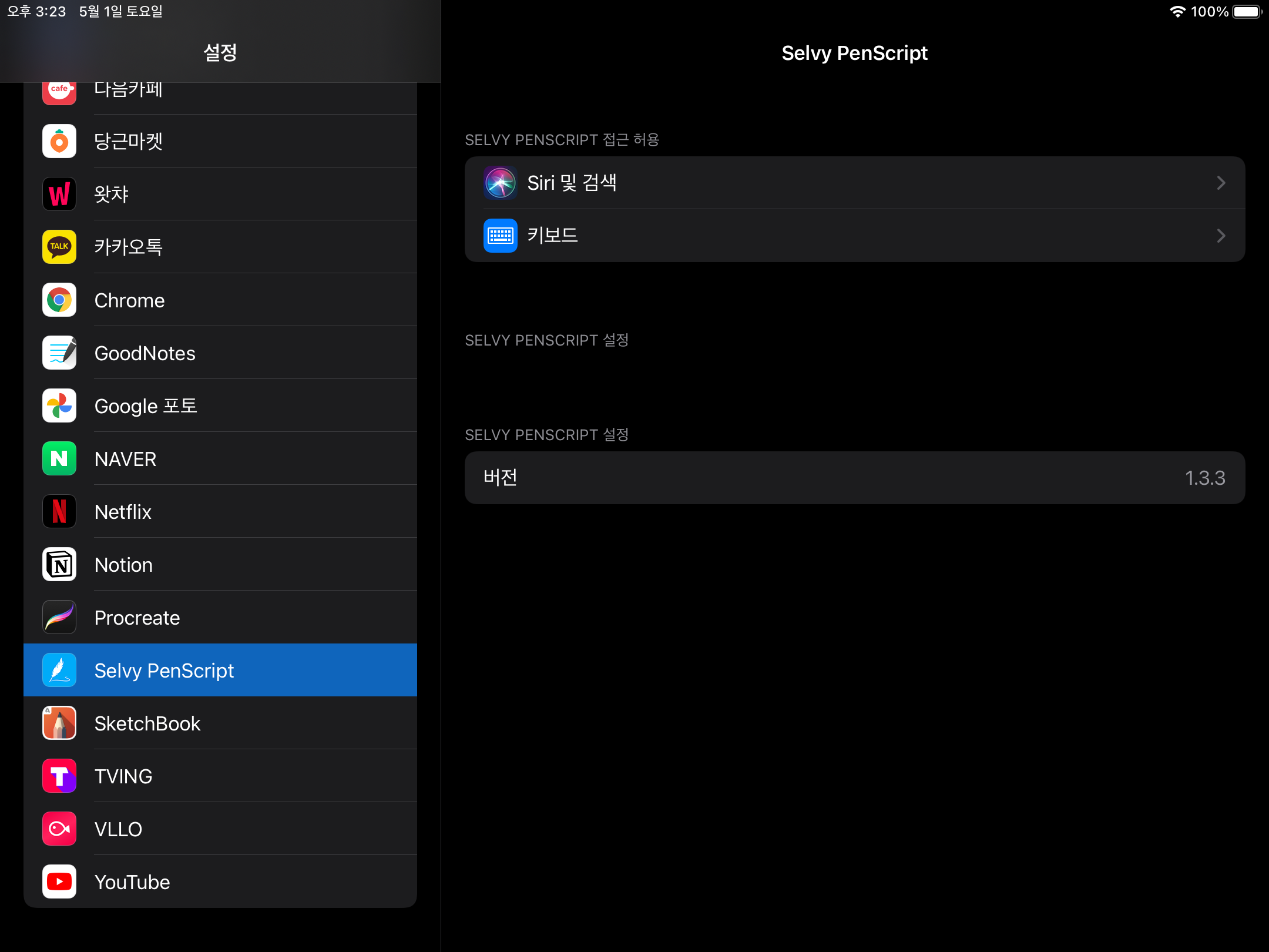 아이패드 톱니바퀴 설정 - 셀비 펜스크립트 Selvy Penscript - 키보드